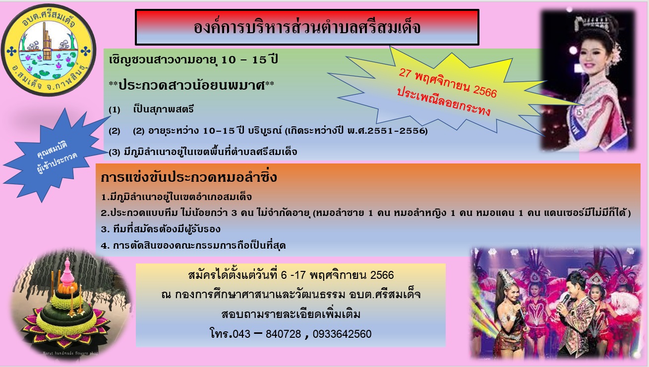 ประชาสัมพันธ์รับสมัคร หมอลำซิ่ง และนางนพมาศ ในงานลอยกระทง วันที่ 27 พฤศจิกายน 2566